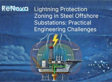 Lightning protection offshore substation in steel structures requires proper LPZ zoning to prevent surge damage to LV/ICT. Renova Energy Solutions explores bonding, SPD placement and entry risks – plus early zoning strategies to avoid costly rework.